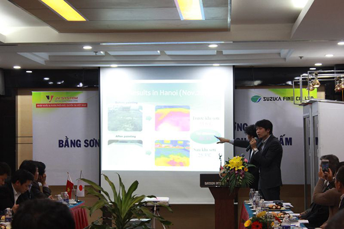 Tại Hội thảo đã giới thiệu sản phẩm sơn SUZUKA là giải pháp sơn phủ tấm lợp với 3 chức năng chính: cách nhiệt, chống nóng và cách âm. Sơn SUZUKA với lớp phủ "COOL TOP Si Super" có tác dụng cách nhiệt vượt trội và khả năng chống chịu thời tiết cao, giúp nâng cao hiệu quả làm mát và giảm tải những áp lực từ môi trường.
