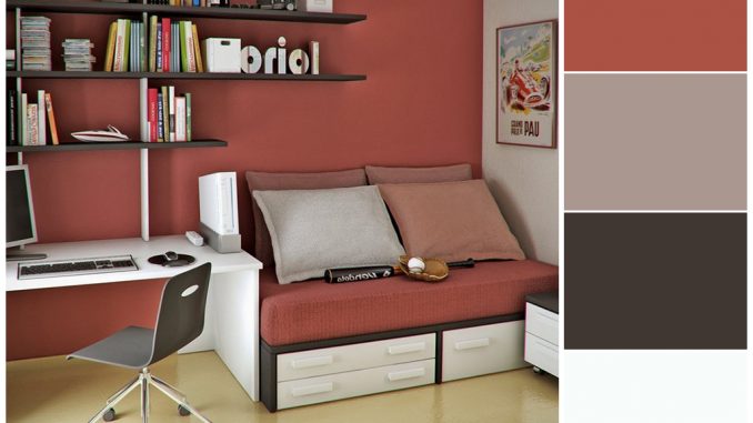 Chọn lựa màu sơn sẫm như màu đỏ đô và kết hợp với các gam màu trung tính như xám lông chuột có thể mang tới nguồn năng lượng tuyệt vời cho không gian làm việc. Tiếp đó, bạn hãy tìm kiếm những vật dụng điểm nhấn có màu nâu đen hay trắng sữa để tạo điểm nhấn nổi bật cho phòng làm việc nhé.